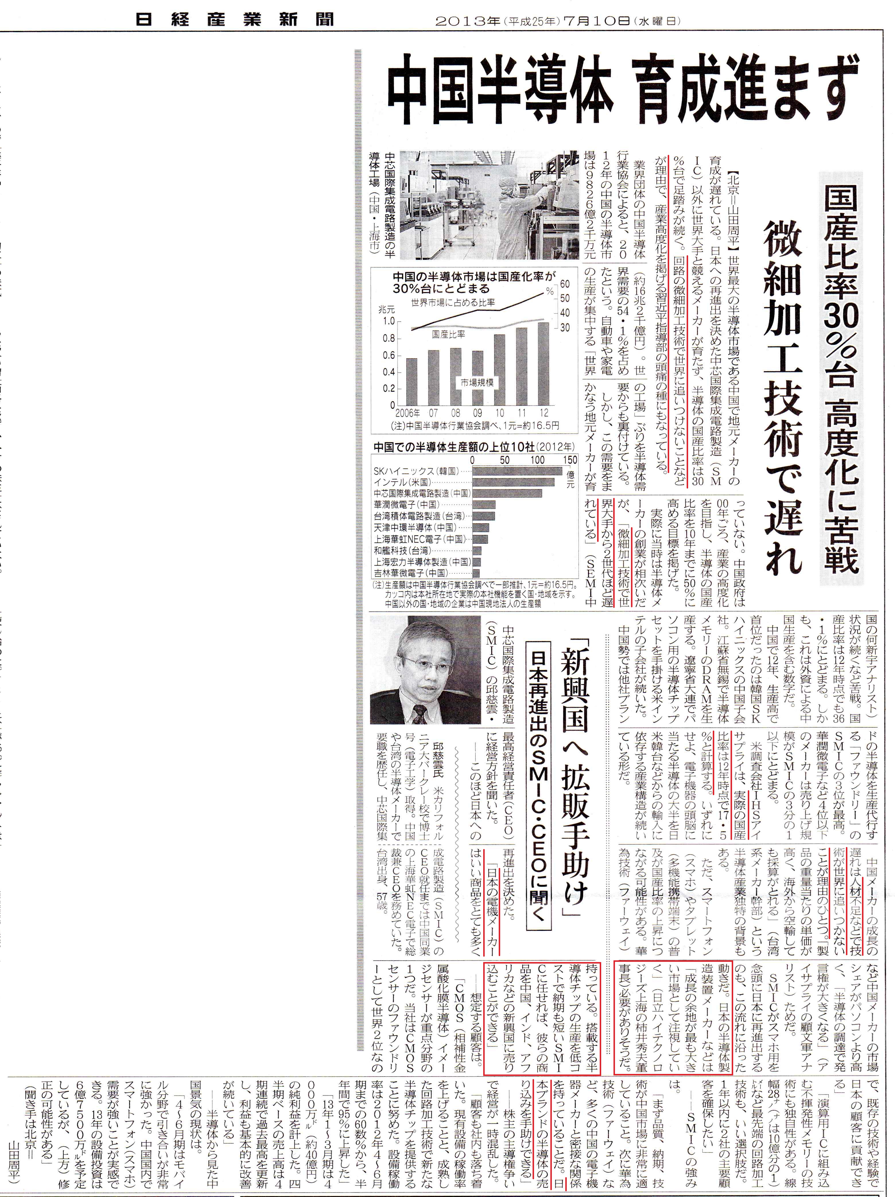 「中国半導体 育成進まず」