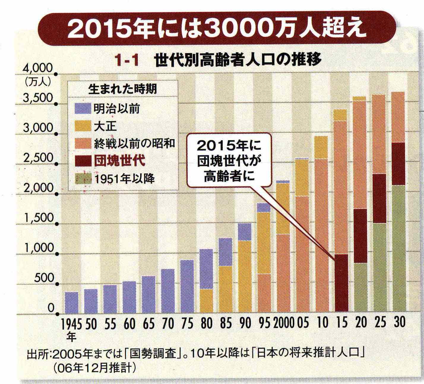 2015年で高齢者が3000万人超。労働者人口が4000万人。となれば3人の高齢者を4人が支えなくてはならないこととなる。