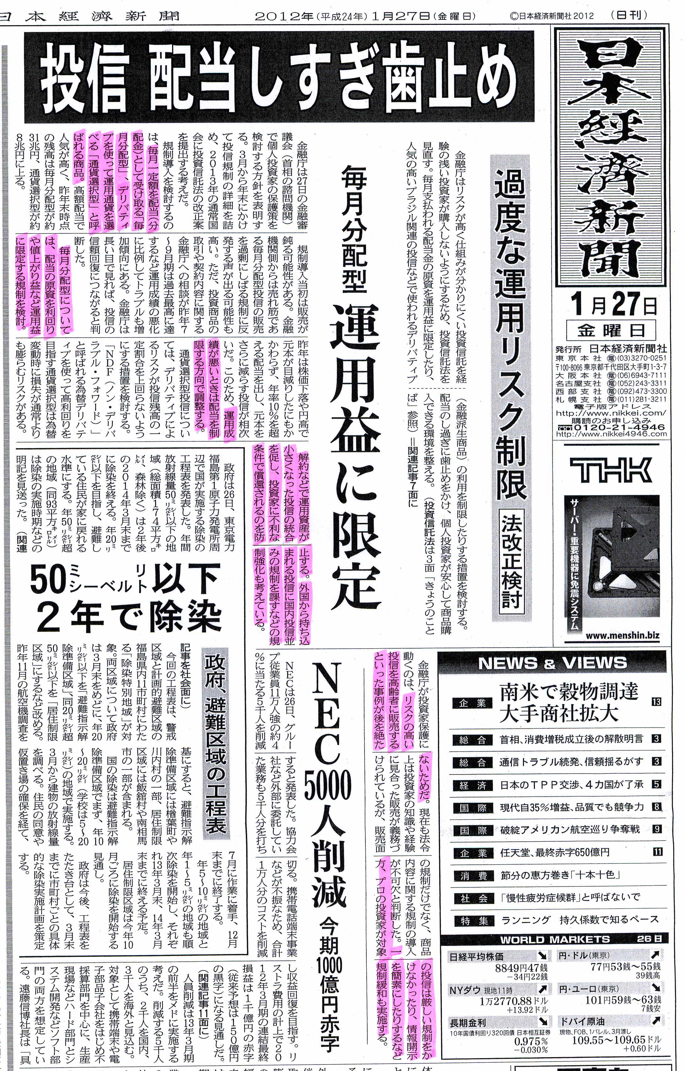 自分年金のための毎月分配型の投信にも規制を掛けるという。